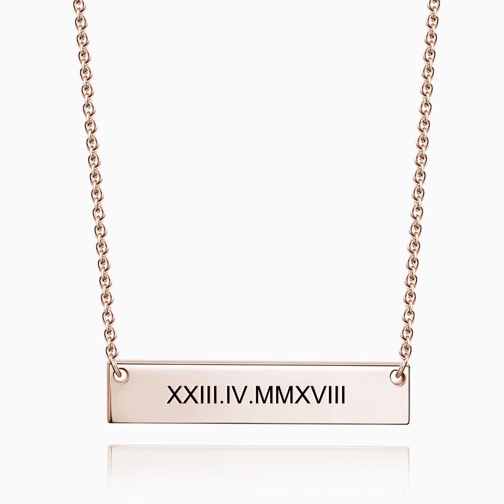 26% DTO.Collar de Barra con Número Romano Grabable Plata Chapado en Oro Rosa -