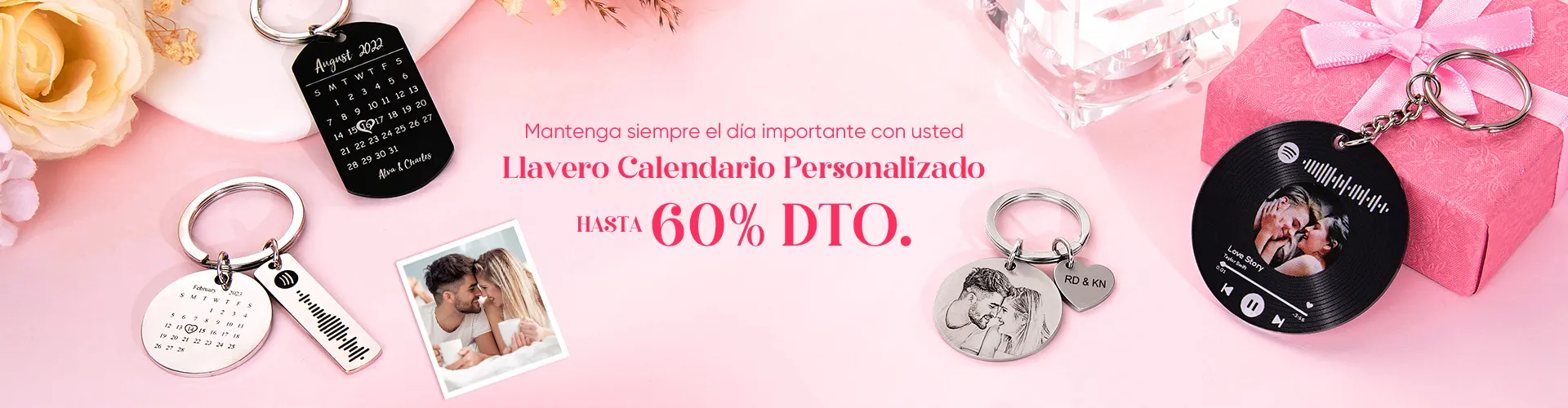 56% DTO.Calendario De Fotos Personalizado Llavero Girar Fecha Especial Pareja Aniversario Regalos -