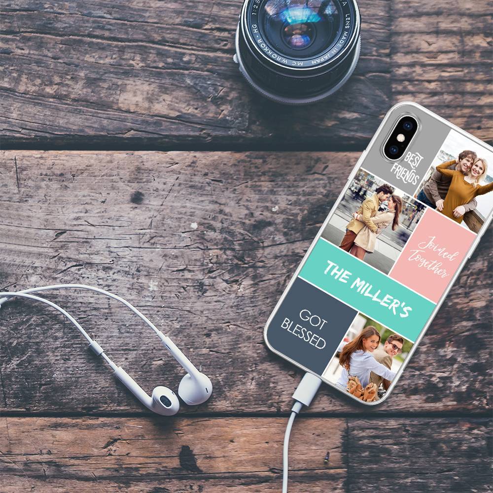 50% DTO.iPhoneX Protectora Funda Case para Teléfono de Foto Personalizada - 3 Imágenes con Nombre -