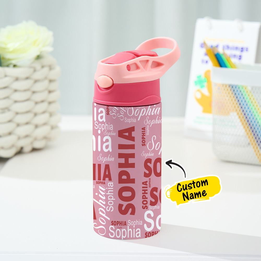 50% DTO.Botella De Agua De Acero Inoxidable Con Nombre Personalizado, Multicolor, Regalo De Regreso A Clases Para Niños -