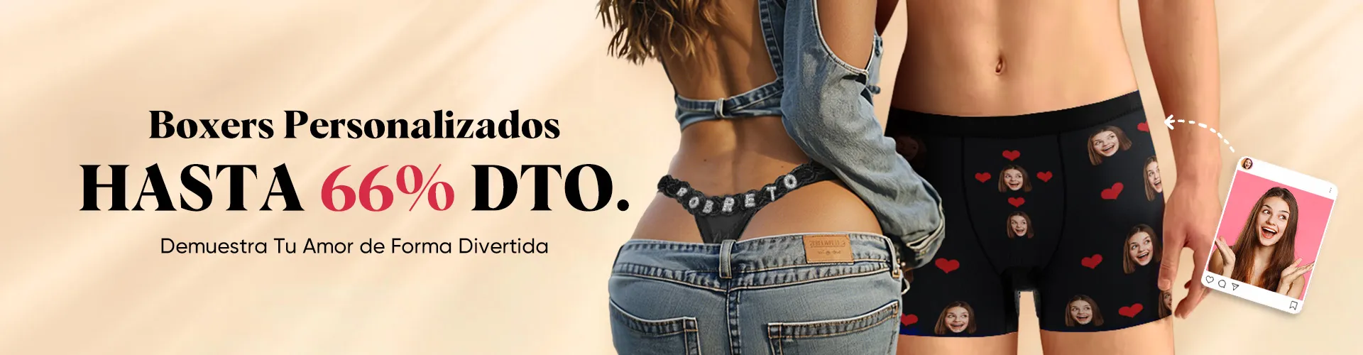 54% DTO.Calzoncillos Tipo B��xer Amor Hug Personalizados - Piel Clara -
