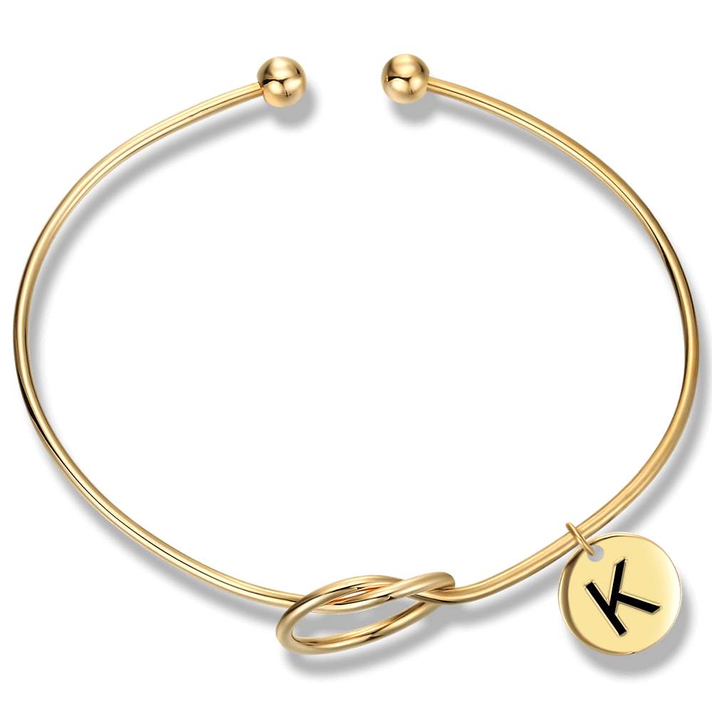 50% DTO.Brazalete de Nombre de Letra Inicial Grabable Chapado en 14k Oro -