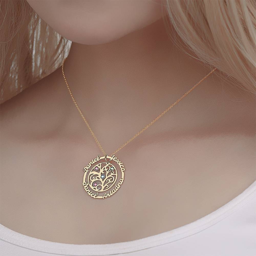 28% DTO.Personalizado Nombre Collar con Piedra de Nacimiento, árbol Familia Collar Chapado en Oro de 14K - Plata -