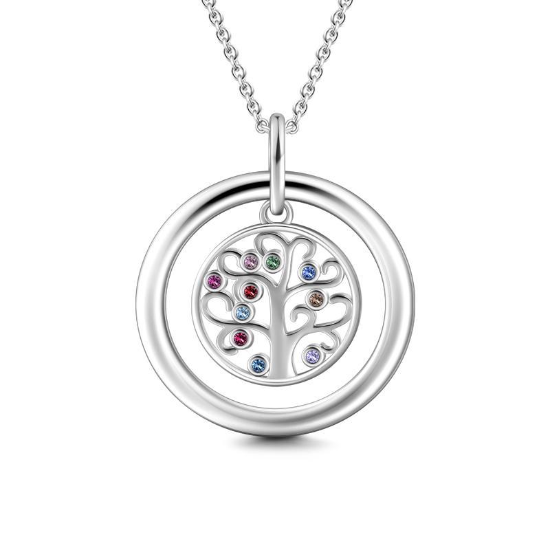 25% DTO.árbol Familiar Collar con Piedra de Nacimiento, Collar Grabable Regalo de Familia Plata -