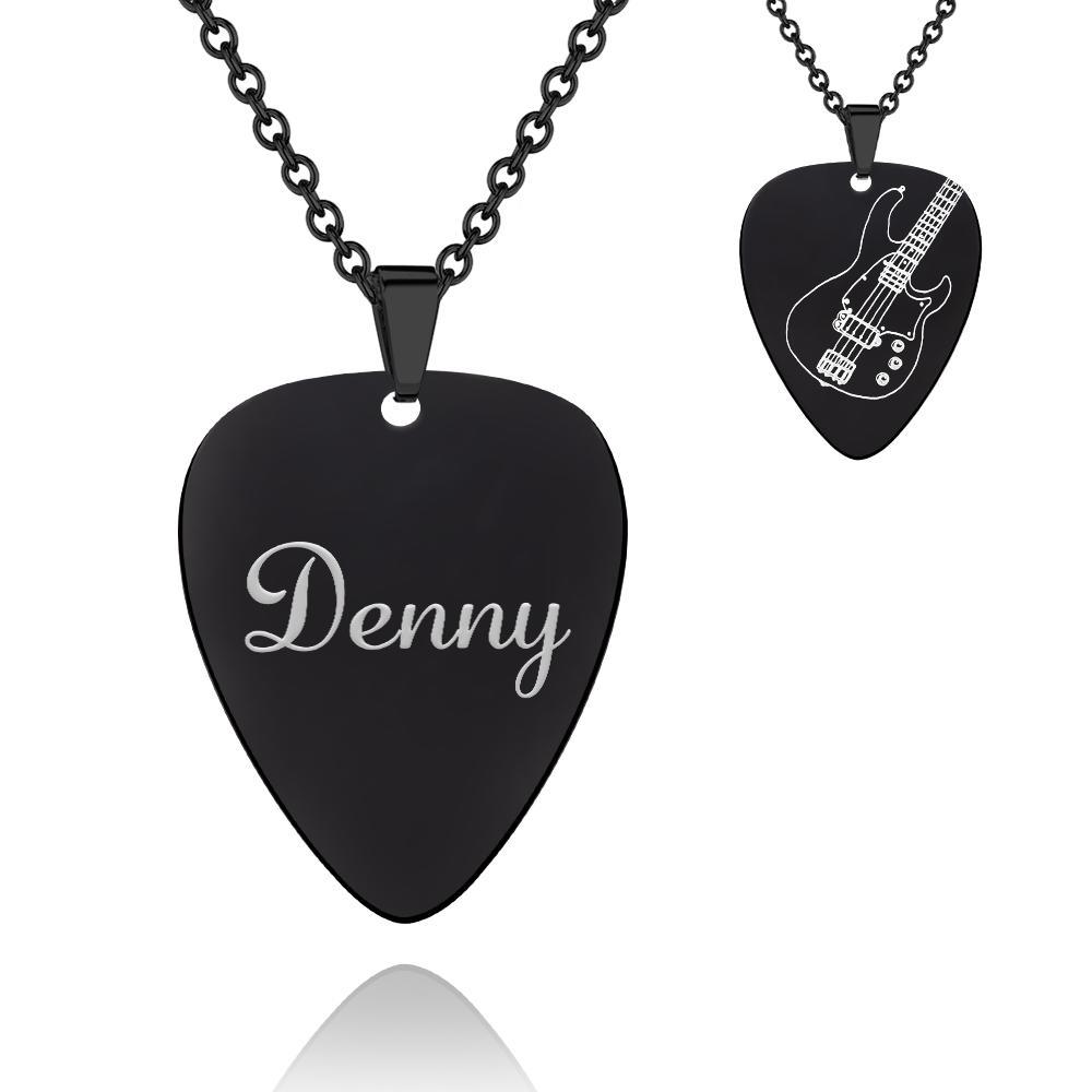 60% DTO.Collar con colgante de púa de guitarra grabado personalizado negro -