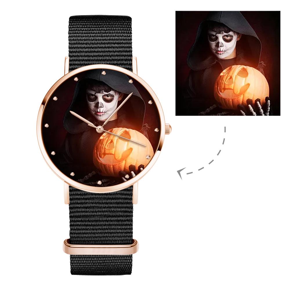 46% DTO.Personalizado Grabado Reloj, Foto Reloj de Correa de Cuero Negro -