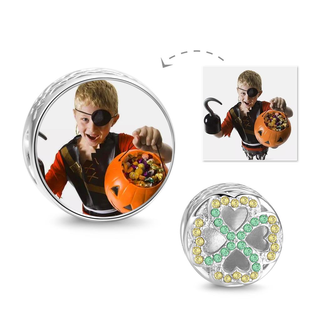 60% DTO.Regalos del Día de Madre - Trébol Verde de Cuatro Hojas Abalorio con Foto -
