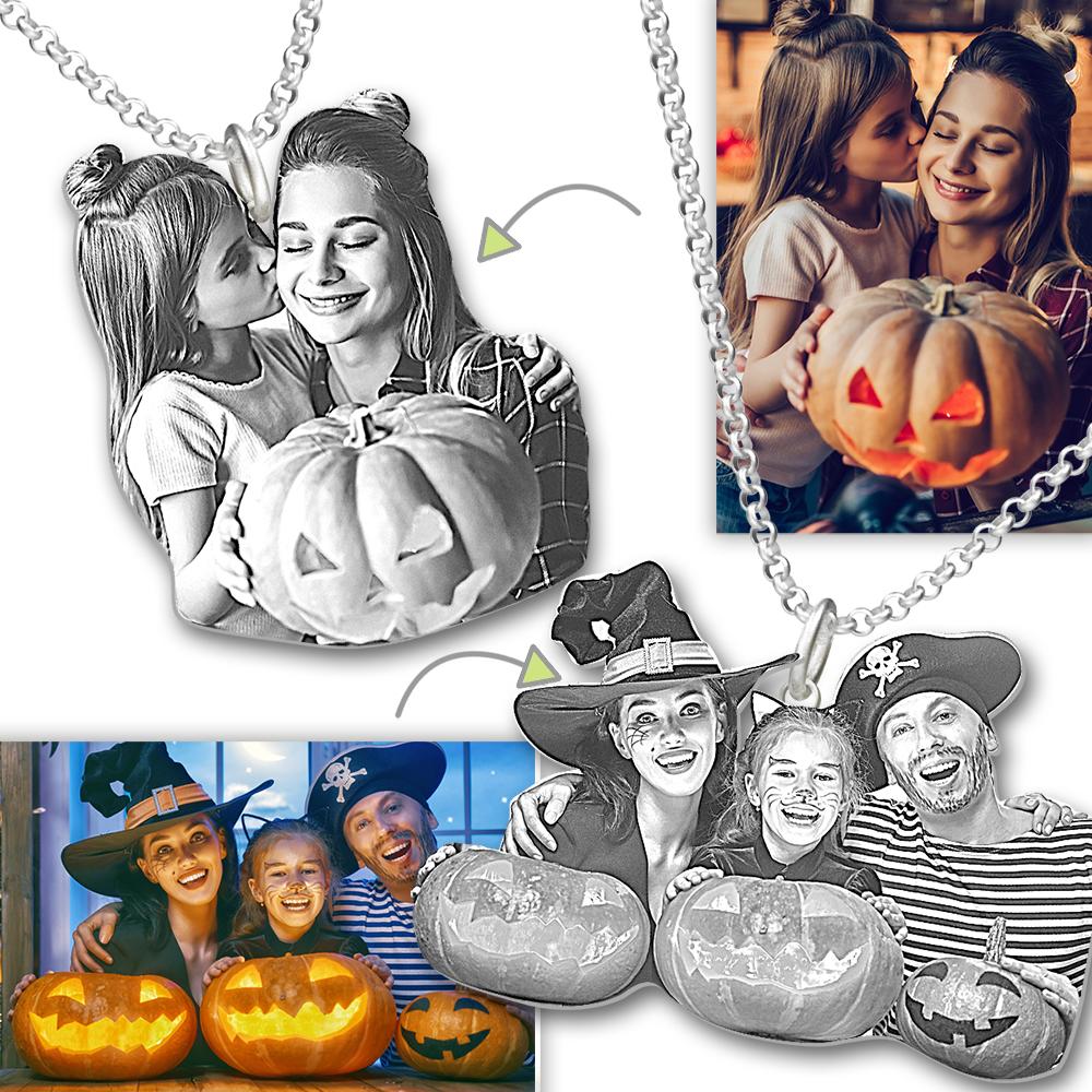 48% DTO.Regalos de Halloween Collar Grabado con Foto Regalos Conmemorativos de Acero Inoxidable Imagen de Bebés -