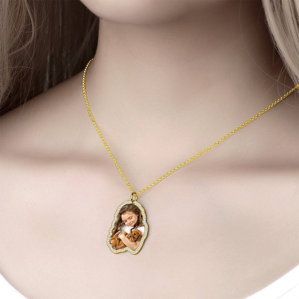38% DTO.Mujer Collar Grabable con Foto Personalizada, Collar con Foto de forma Oval con Cristal de Strass Dorado Ba?ado en Oro 14K - Bosquejo
