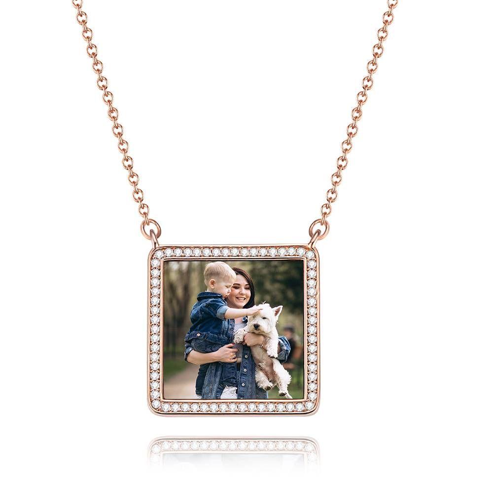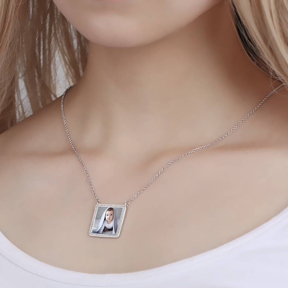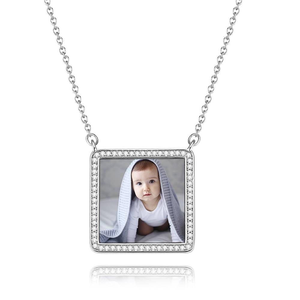 56% DTO.Collar Grabado con Foto Diamante de Imitación Cristal Forma Cuadrada Collar único de Platino Chapado en Plata - Fotocopiado -