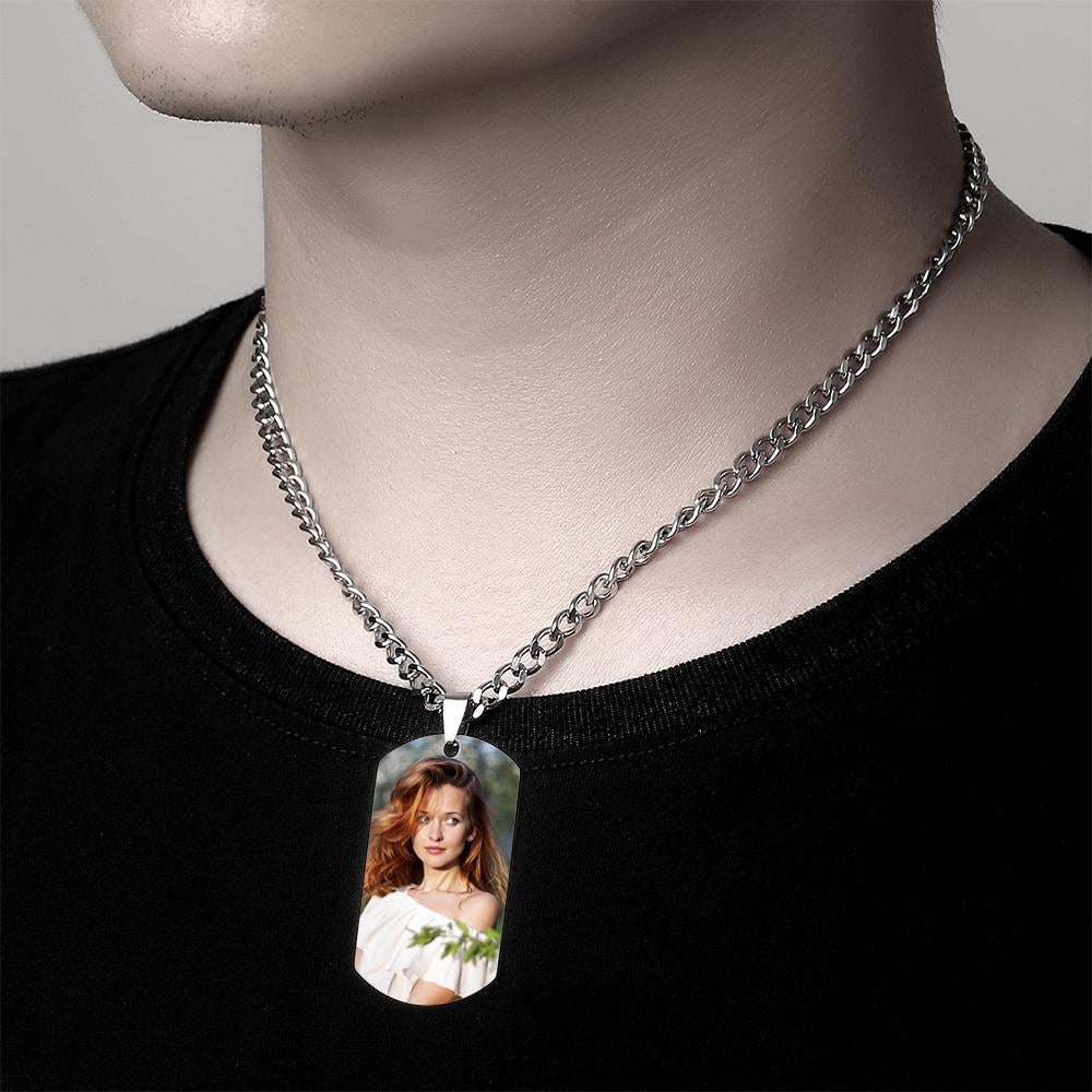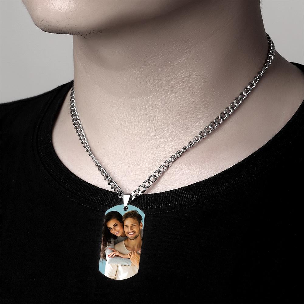 50% DTO.Regalos del Día del Padre Hombre Collar con Etiqueta de Foto con Grabado Acero Inoxidable