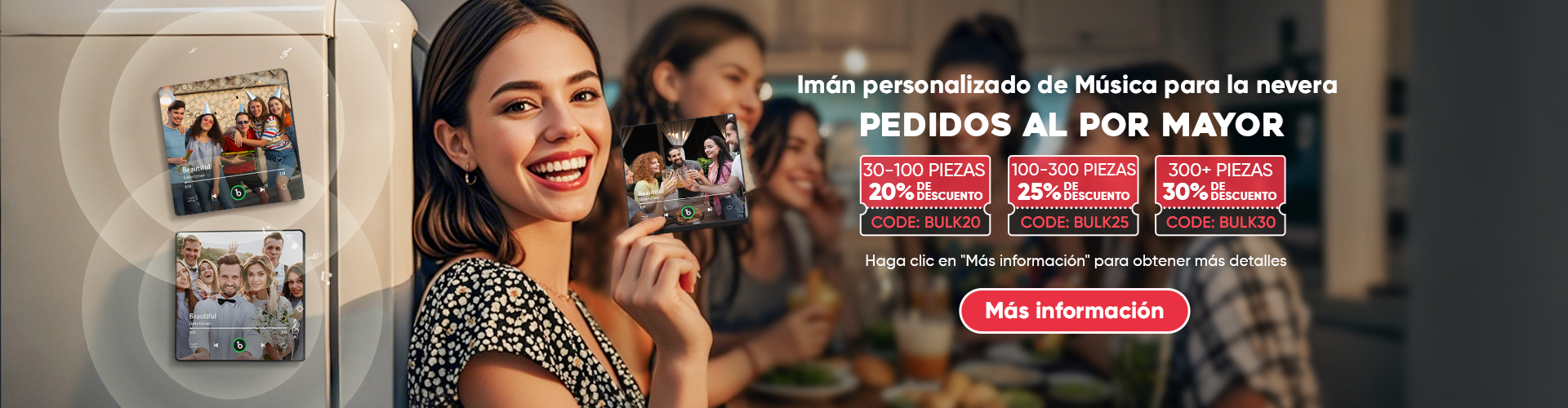 60% DTO.Imán De Nevera De Música Personalizado, Imán De Nevera De Foto Personalizado, Puede Reproducir Canciones -