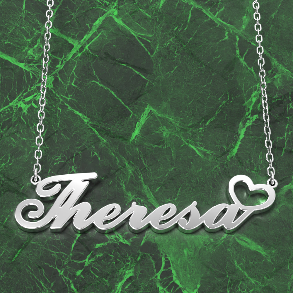 50% DTO.Theresa Collar Con Nombre Plata Antioxidante Collar Personalizado Con Corazón, Regalos Personalizados Para Ella -