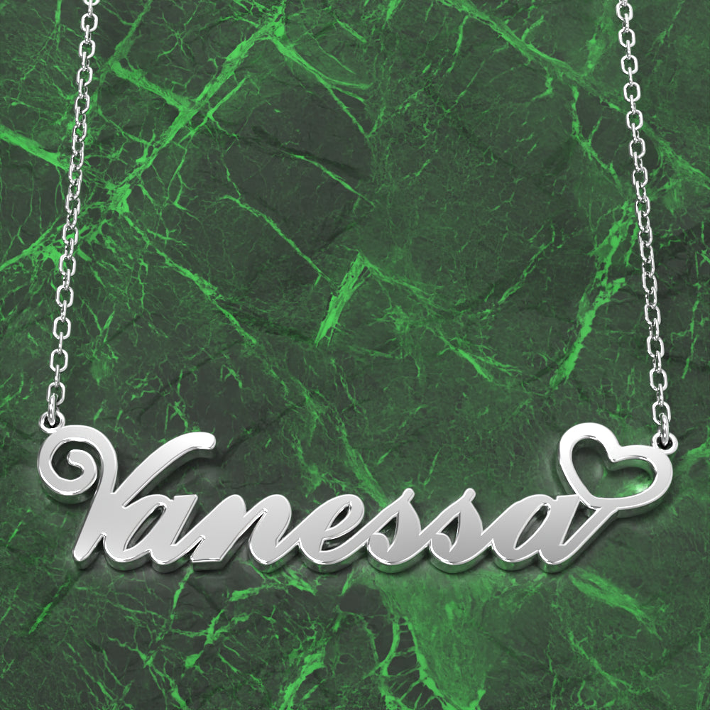50% DTO.Vanessa Collar Con Nombre Plata Antioxidante Collar Personalizado Con Corazón, Regalos Personalizados Para Ella -