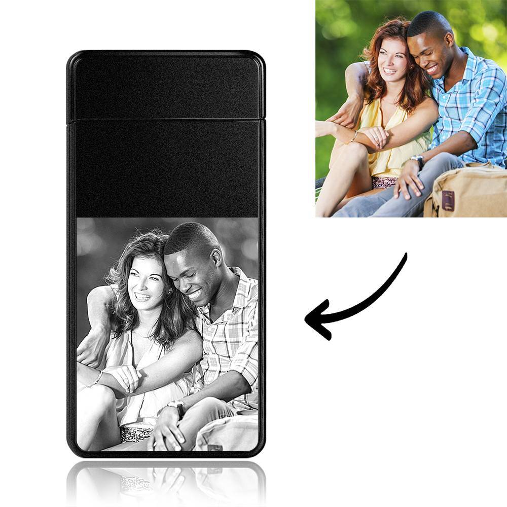 60% DTO.Regalo de Navidad Foto Encendedor con GrabadoEléctrico Encendedor Exfoliante Negro -