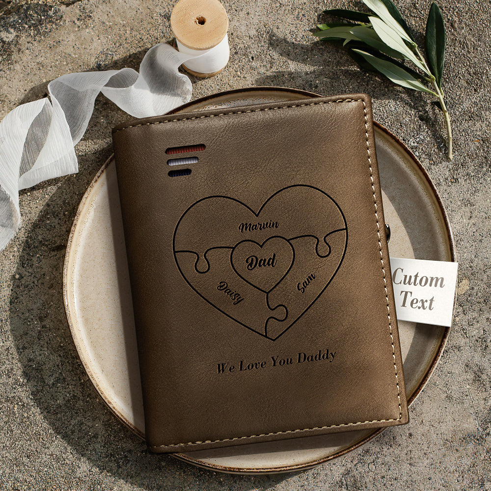 35% DTO.Cartera Con Grabado Personalizado Cartera Con Nombre En Forma De Corazón Con Monedero Con Cremallera Regalos Para El Día Del Padre -