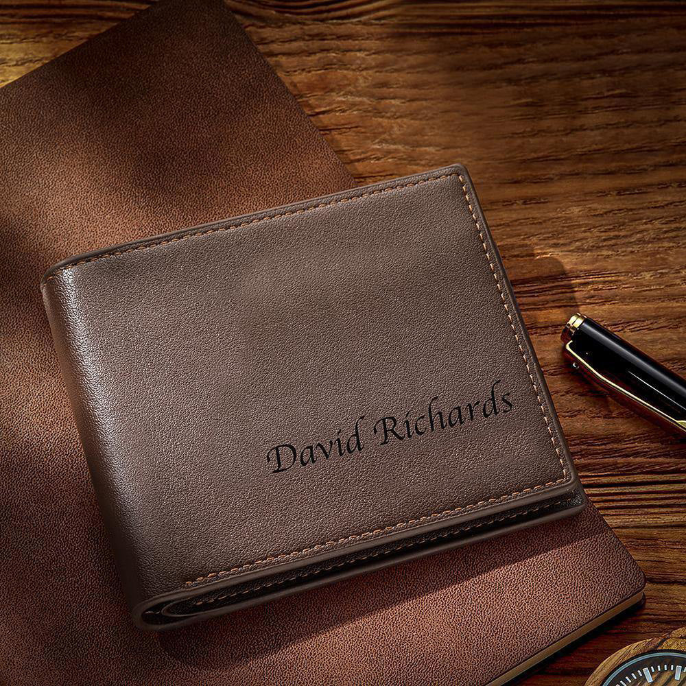 37% DTO.Personalizado Grabado Cartera Doble con Foto Grabada para Hombres de Cuero Café de Estilo Moderno -