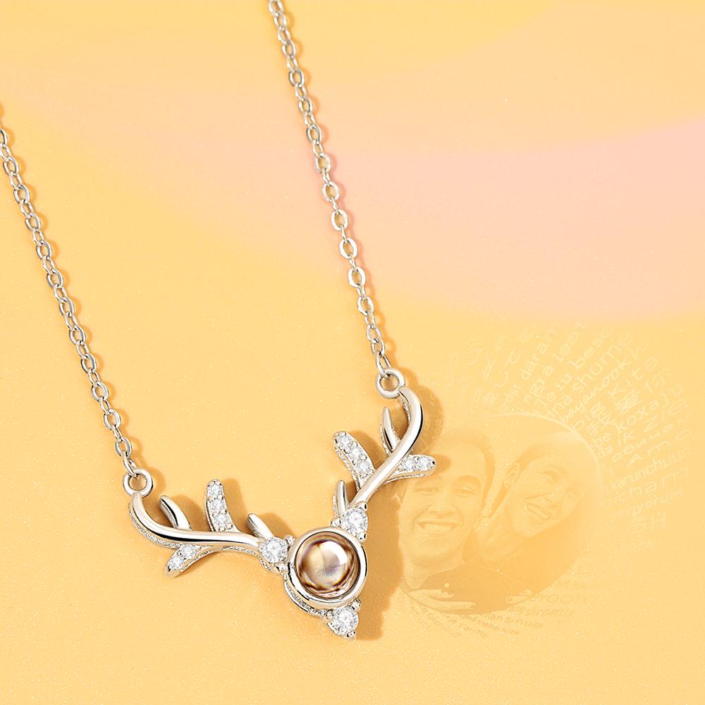58% DTO.Te Amo Collar en 100 Idiomas Plata Proyección Foto Grabada - Astas