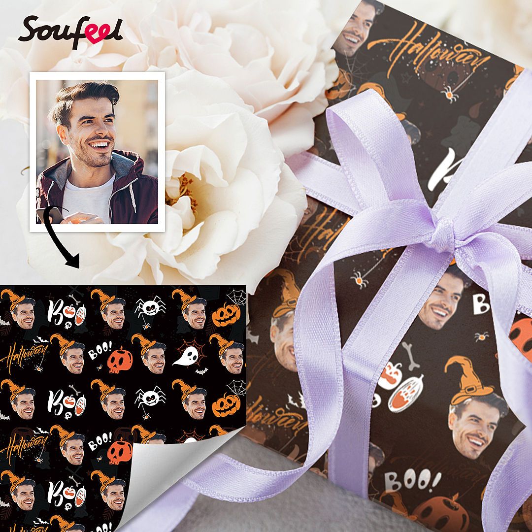 60% DTO.Feliz Halloween Cara Personalizada Papel de Regalo para Halloween -
