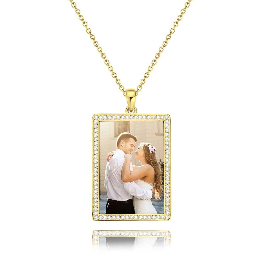 49% OFFCollar Grabado con Foto Diamante de Imitación Cristal, Collar con Foto Regalo de Recuerdo de Platino Chapado en Plata - Colorido -