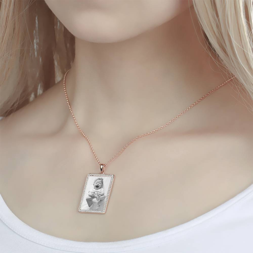 38% OFFCollar Grabado con Foto Diamante de Imitación Cristal, Collar con Foto Regalo Mejor Chapado en Oro Rosa - Fotocopiado -