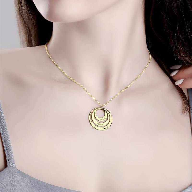 Regalo para mamá: collar de tres discos grabados en plata chapada en oro de 14 k