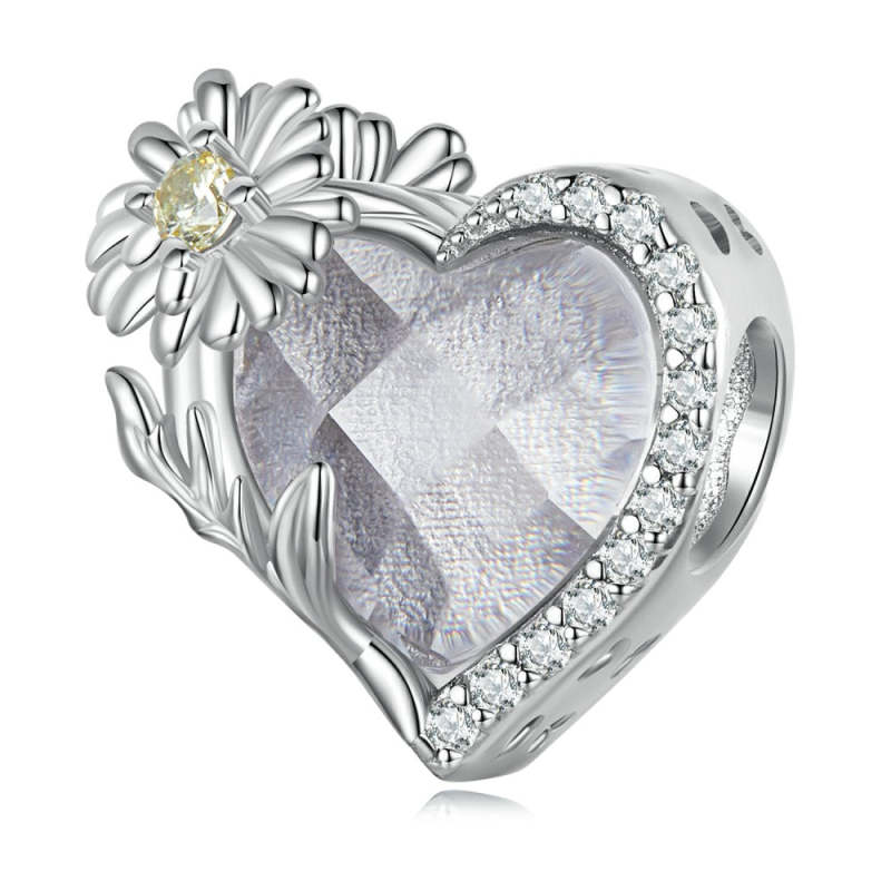 Charm con piedra natal de abril, color blanco, plata