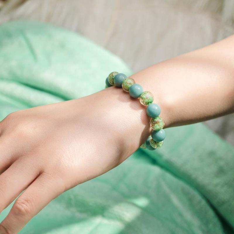 Pulsera Con Cuentas Elásticas De Cristal De Luciérnaga Verde Militar Que Brilla En La Pulsera Luminosa Oscura