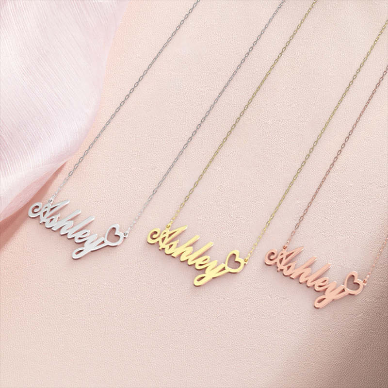 Ashley Collar Con Nombre Plata Chapado en Oro 14K Collar Personalizado Con Corazón, Regalos Personalizados Para Ella
