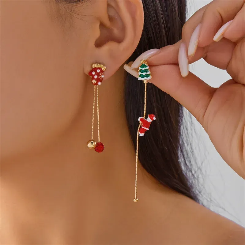 ¡Celebra la Navidad con estilo con nuestros pendientes largos asimétricos de Papá Noel! Con un divertido toque de dibujos animados, estos pendientes presentan una alegre mezcla de diseños navideños que aportan un aire festivo y alegre a tu look navideño.
