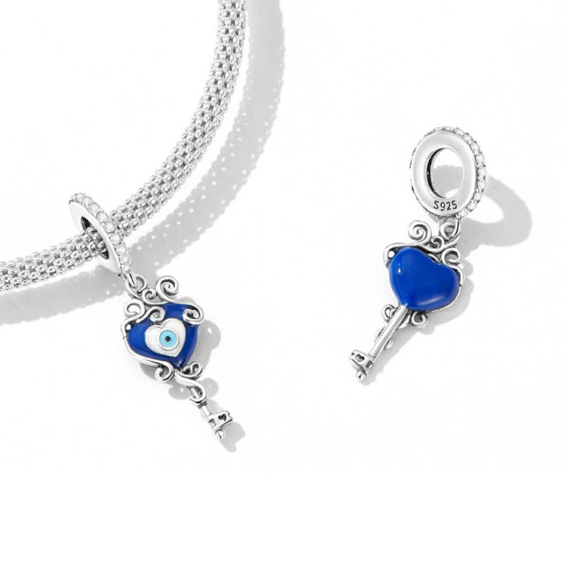 Charm Colgante Corazón Azul Mal de Ojo Plata