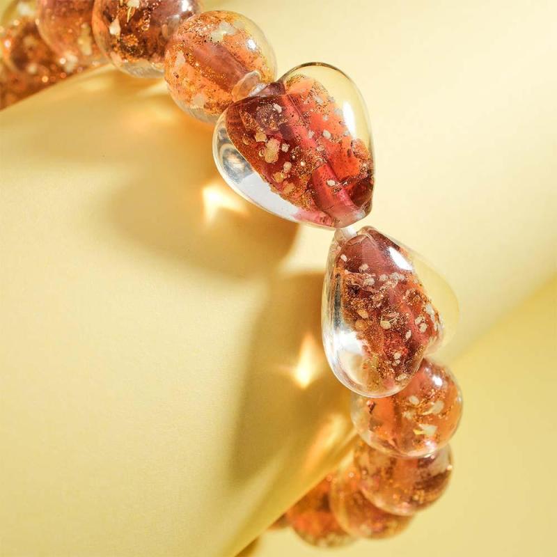 Pulsera Elástica Con Cuentas De Cristal De Luciérnaga De Corazón A Corazón Marrón Que Brilla En La Oscuridad Pulsera Luminosa