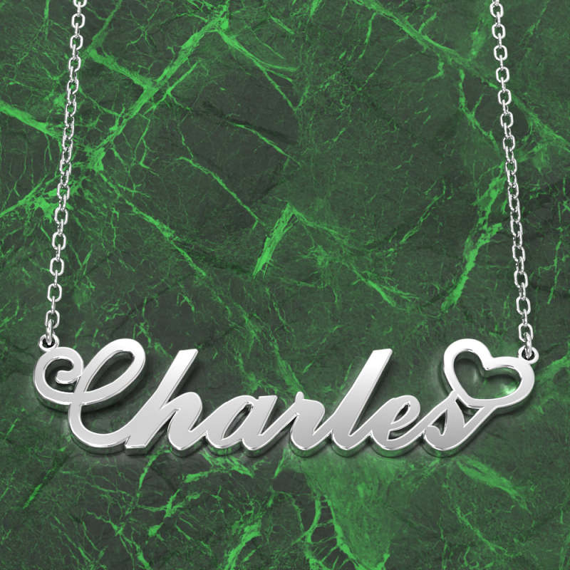 Charles Collar Con Nombre Plata Chapado en Oro 14K Collar Personalizado Con Corazón, Regalos Personalizados Para Ella