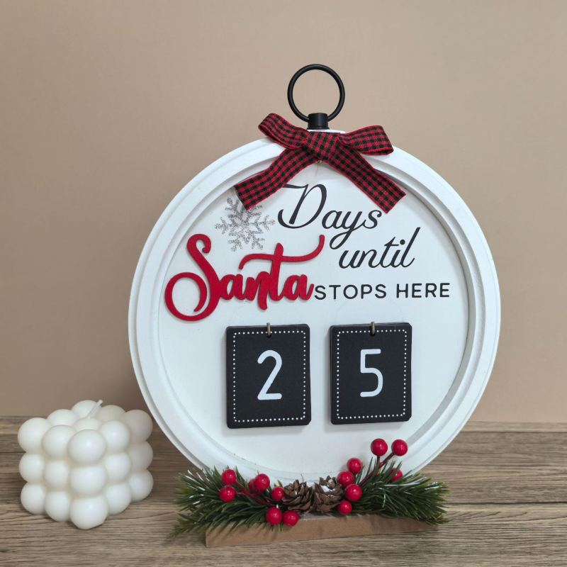 ¡Este Calendario de Cuenta Regresiva Navideña hace que la temporada navideña sea aún más emocionante! Con la frase festiva "Días hasta que Santa Claus llegue aquí", te ayuda a contar los días que faltan para Navidad con estilo. Diseñado con un encantador lazo rojo a cuadros, un detalle de copos de nieve y etiquetas con números extraíbles, le da un toque navideño acogedor a cualquier habitación. Perfecto para la repisa de la chimenea, la entrada o como un regalo de Navidad para familias que aman las tradiciones navideñas.