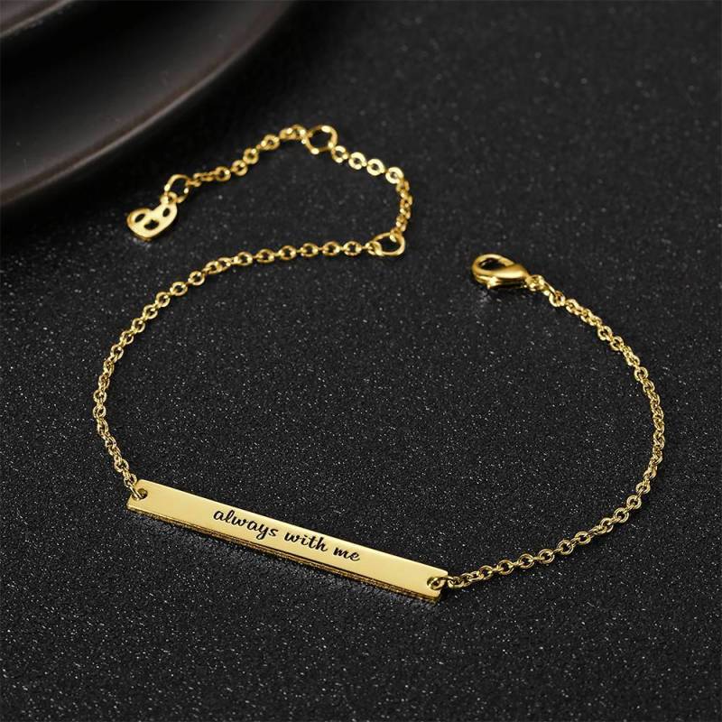 Las pulseras grabables son una forma divertida y moderna de personalizar su look. No solo estos elementos lucen lisos y elegantes por sí solos, sino que se ven fantásticos después de poner abalorios. Los cierres son seguros, pero para aquellos que desean una mayor tranquilidad, también hay cadenas de seguridad. Además de brazaletes con dije, Soufeel ofrece una variedad de pulseras con foto, pulseras con nombres y pu?os. Algunos dise?os pueden ser personalizados con un grabado. Es un regalo muy popular para damas de honor, personalizado con nombres de ni?os o nietos, perfecto regalo de Navidad para su mamá, abuela o esposa. Soufeel tiene un montón de opciones de joyas personalizadas que tienen un precio razonable y son un gran regalo para todos tipos de ocasiones como cumplea?os, vacaciones, aniversarios.Pulsera De Bar Grabada Personalizada, Regalo De Dama De Honor Chapado En Oro De 14K - Dorado