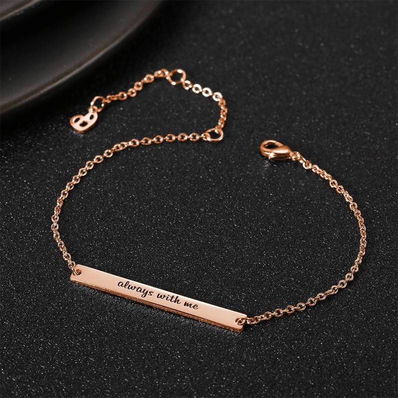 Las pulseras grabables son una forma divertida y moderna de personalizar su look. No solo estos elementos lucen lisos y elegantes por sí solos, sino que se ven fantásticos después de poner abalorios. Los cierres son seguros, pero para aquellos que desean una mayor tranquilidad, también hay cadenas de seguridad. Además de brazaletes con dije, Soufeel ofrece una variedad de pulseras con foto, pulseras con nombres y pu?os. Algunos dise?os pueden ser personalizados con un grabado. Es un regalo muy popular para damas de honor, personalizado con nombres de ni?os o nietos, perfecto regalo de Navidad para su mamá, abuela o esposa. Soufeel tiene un montón de opciones de joyas personalizadas que tienen un precio razonable y son un gran regalo para todos tipos de ocasiones como cumplea?os, vacaciones, aniversarios.Pulsera De Bar Grabada Personalizada, Regalo De Dama De Honor Chapado En Oro Rosa - Oro Rosa