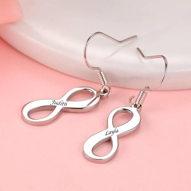 Pendientes Grabados Personalizados Pendientes Colgantes Con Pendientes Infinitos Platino Plateado