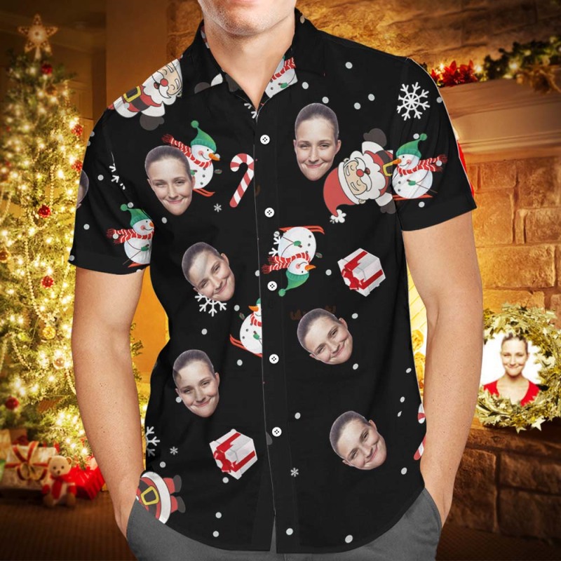 Cara Personalizada, Traje Hawaiano A Juego Para La Familia, Fiesta En La Piscina De Navidad, Ropa Para Padres E Hijos, Muñeco De Nieve, Esquí, Bastón De Caramelo, Regalos Navideños