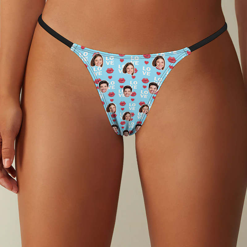 Regalo Del D��a De San Valent��n Con Estampado De Labios Tanga Thong Para Mujer Personalizado Face Love