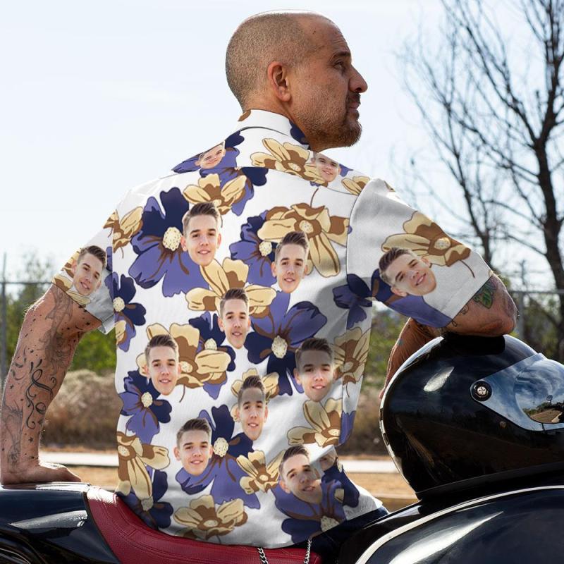 Camisas Hawaianas Personalizadas Con Diseño De Flores Moradas, Camisa De Playa Aloha Para Hombres
