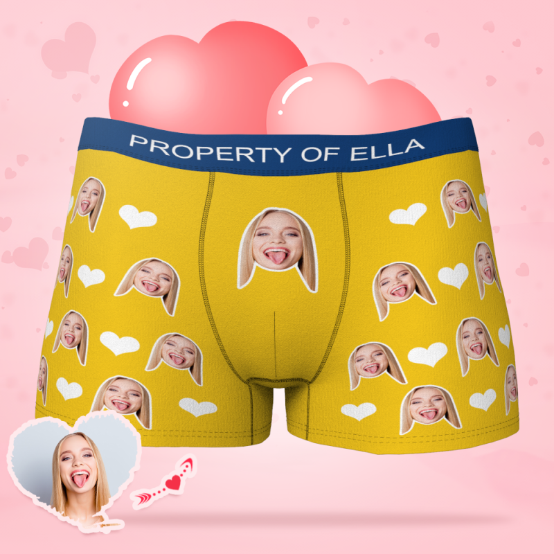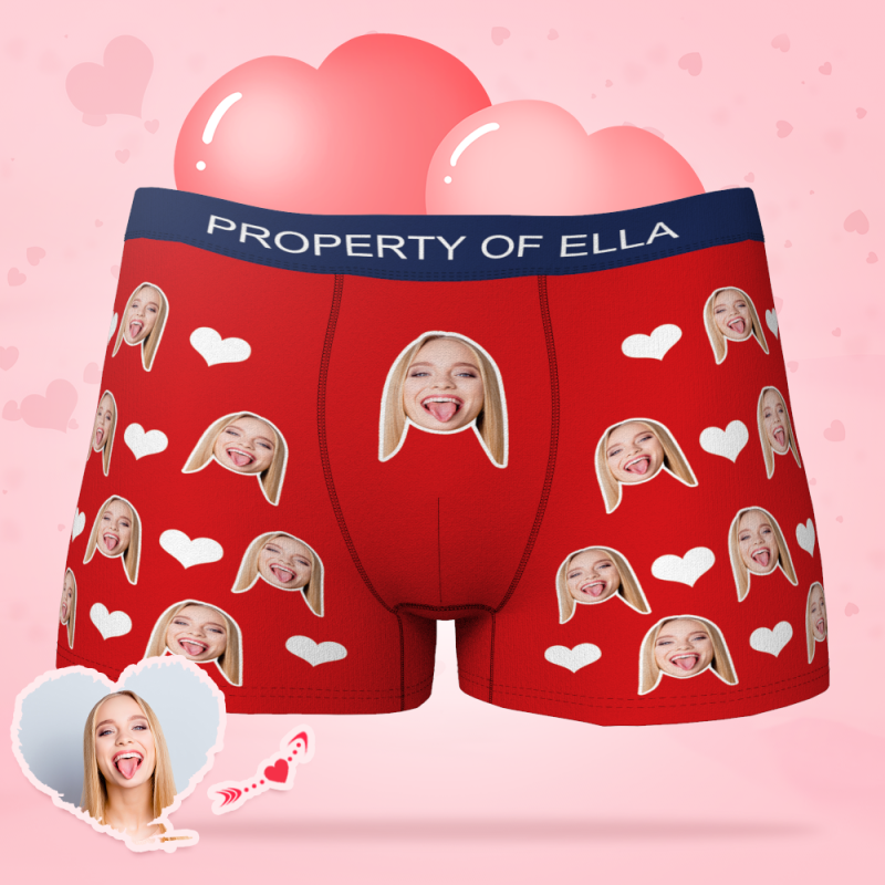 Ropa Interior Personalizada De La Cara Del Corazón De Los Hombres Del Boxeador De La Foto Con Los Regalos Coloridos Del Texto Para él