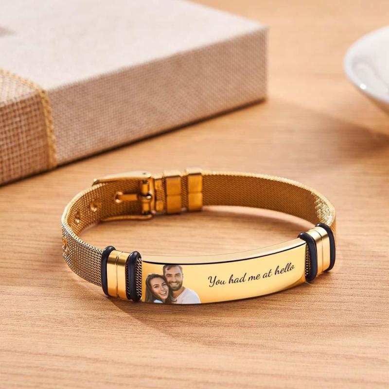 Personaliza la pulsera grabando en ella su fotografía y un mensaje especial, y conviértela en un objeto inolvidable.