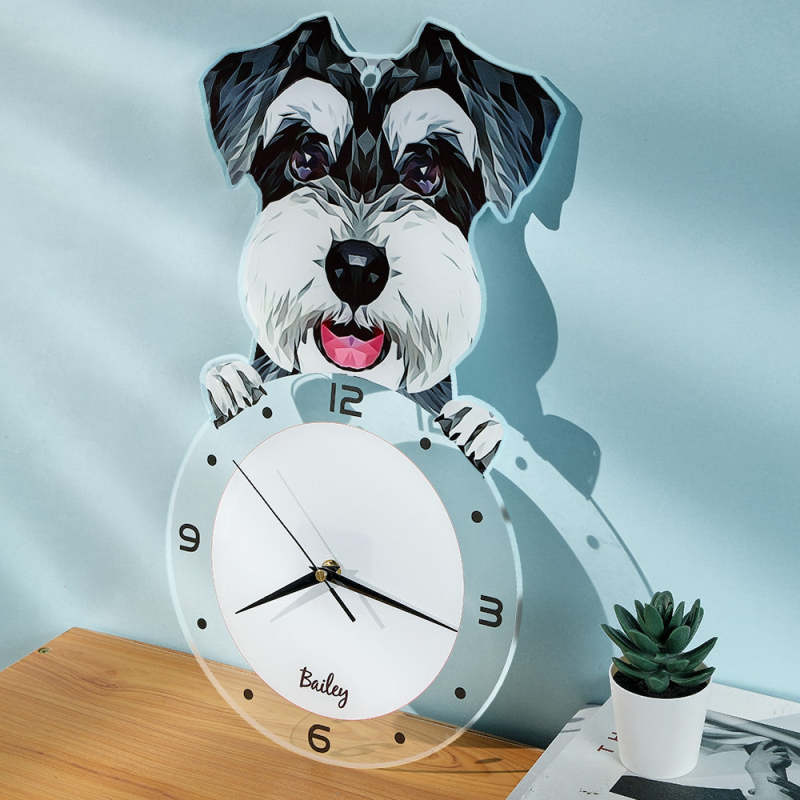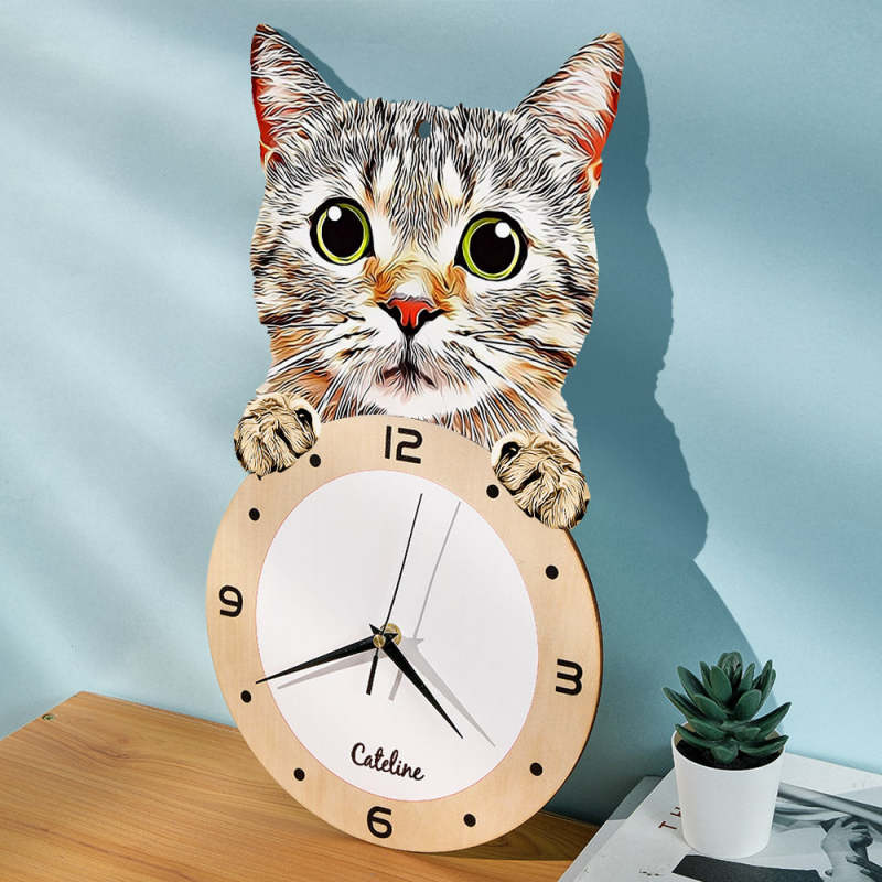 Este reloj con esfera de mascota personalizado es el regalo perfecto para cualquier amante de las mascotas. Con la opción de cargar una foto de tu compañero peludo y agregar un nombre personalizado, es un regalo único y sincero. Fabricado con madera o acrílico de alta calidad, este delicado reloj añade un toque encantador a cualquier dormitorio o sala de estar.