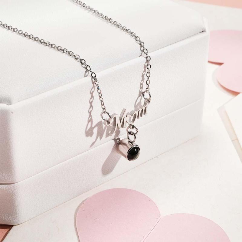Un collar de proyección especial, este collar tiene una función de proyección y se combina con un colgante 'MAMÁ'. Simplemente sostenga el colgante frente a una fuente de luz y proyectará la foto. Es muy adecuado como regalo del Día de la Madre o de cumpleaños para expresar tu amor y gratitud a tu madre.