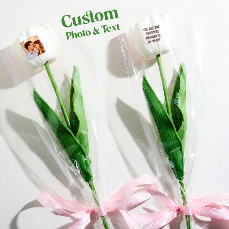 Tulipán con foto: Nuestros tulipanes te permiten agregar no solo una foto de tu ser querido, sino también un mensaje personal, dándole un toque de cariño al regalo, haciéndolo verdaderamente único e inolvidable.