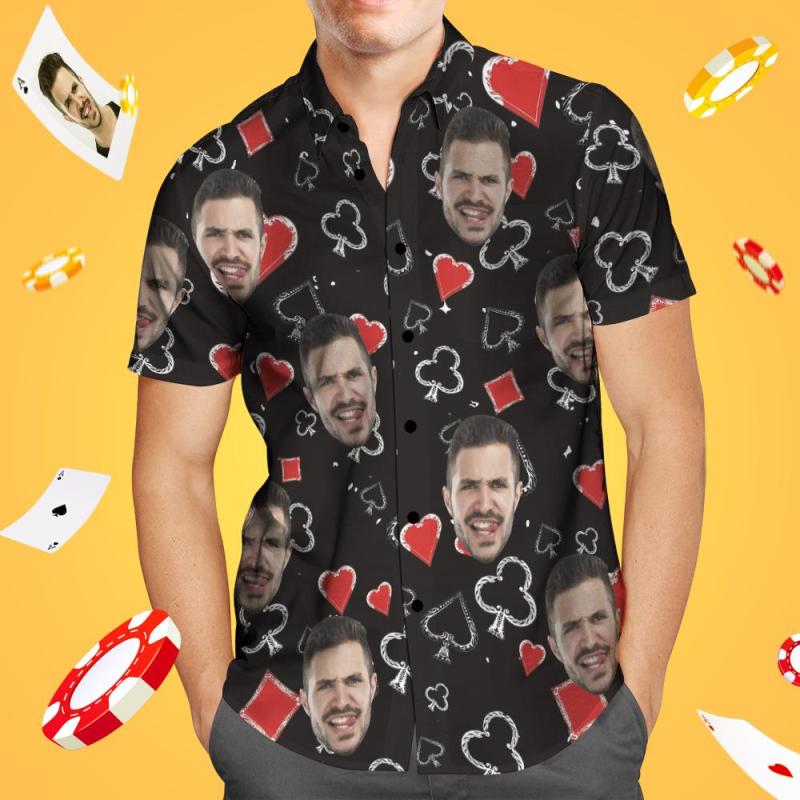 Camisa Hawaiana De Póquer Personalizada Cara Aloha Beach Camisa Regalo Para Él