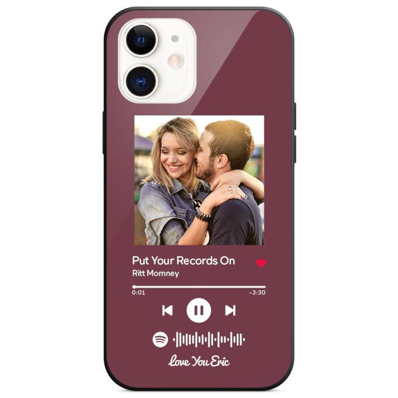 Funda Para Iphone Personalizada Con Código De Spotify Music Con Texto, Escaneable, Grabado, Canción De Música Personalizada, Vidrio Templado - Púrpura