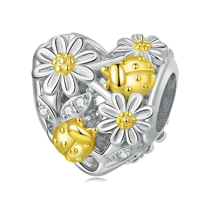 Ciondolo Con Motivo Margherita E Coccinella In Argento