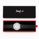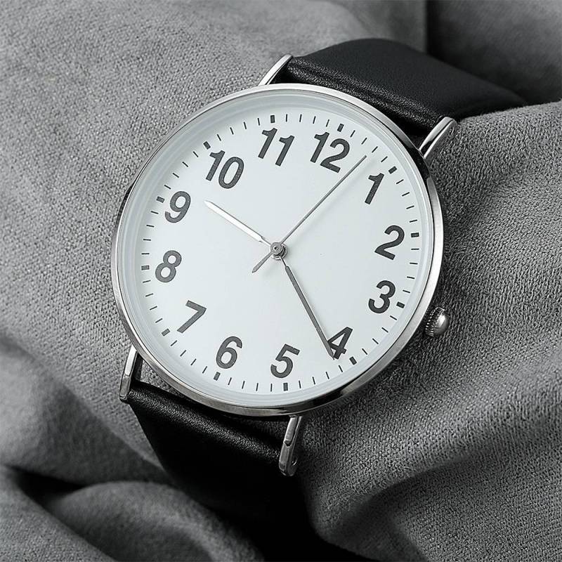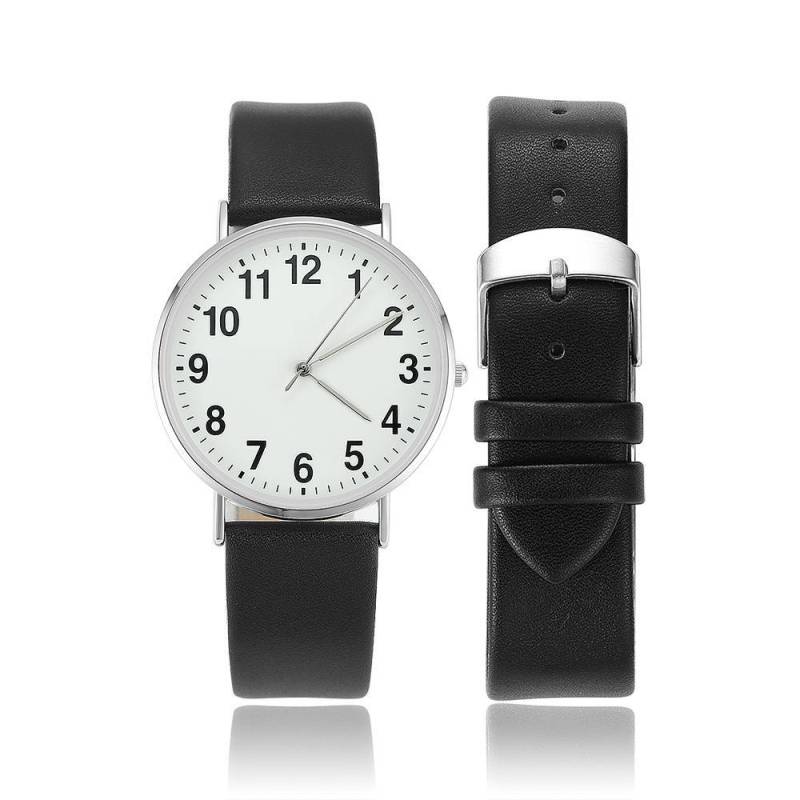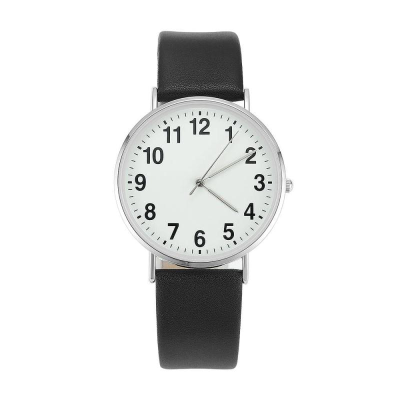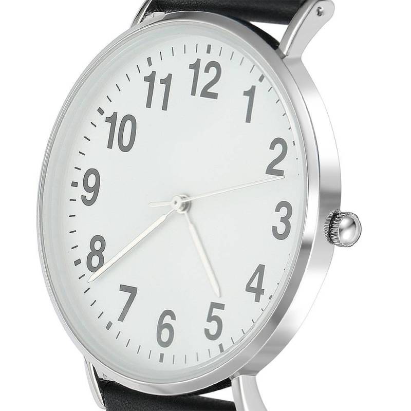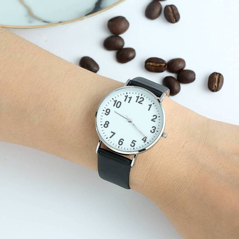Dial Digital Reloj Cuarzo de Esfera Blanca con Correa de Cuero Negro - Mujeres