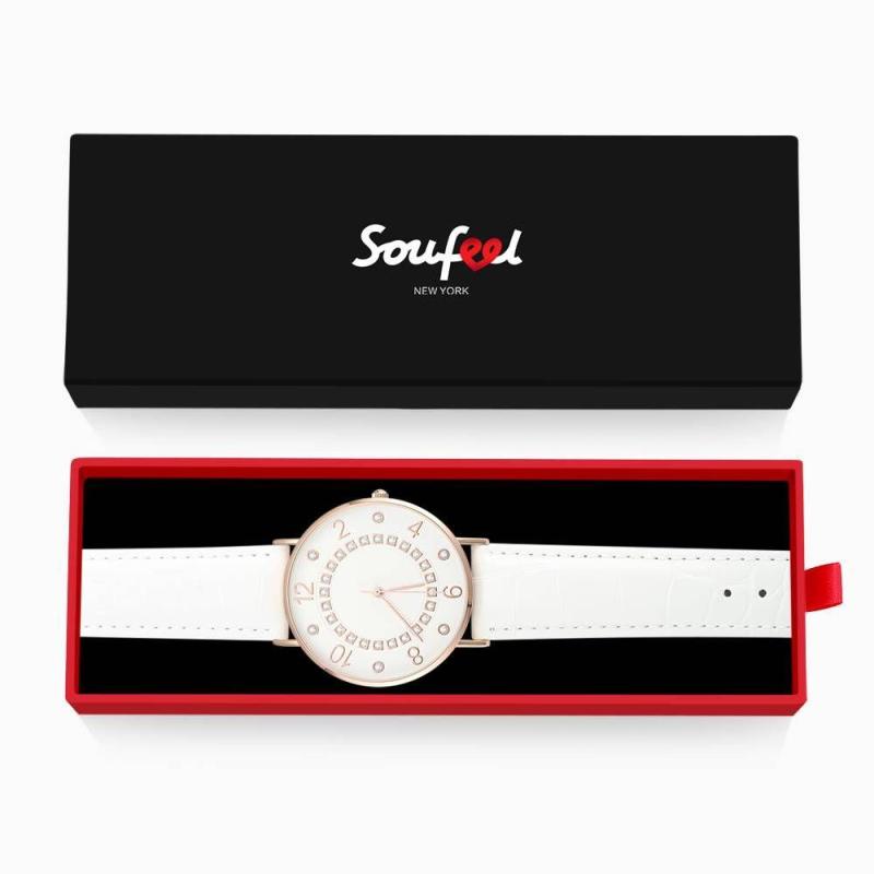 Soufeel adopta los movimientos de reloj fabricados por el fabricante líder mundial de movimientos Ronda en Suiza y Citizen en Japón, disfrutará del tiempo preciso que desee. Vida diaria resistente al agua. Es una verdadera declaración de dise?ador y el reloj perfecto para cualquier ocasión. Este reloj tiene un dise?o simple y único, con una caja delgada, puede combinar fácilmente cualquier tipo de accesorios. Este reloj clásico es un regalo perfecto para usted o sus amigos de una manera elegante y lujosa. Soufeel tiene un montón de opciones de joyería personalizadas que tienen un precio razonable y son excelentes regalos para todo tipo de ocasiones como cumplea?os, días festivos, aniversarios. ?Es genial para capas, una maravillosa pieza minimalista, un regalo perfecto para su esposa, novia, esposo, novio o simplemente para darle un capricho! Dial Digital Reloj Cuarzo de Esfera Blanca con Correa de Cuero Blanco - Hombre.